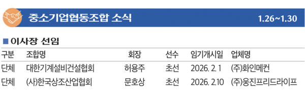 중소기업협동조합 소식 - 2026.02.02 등록일 2026.02.02 바로가기 http://www.kbiznews.co.kr/news/articleView.html?idxno=113376 이전글 ‘불연재료 의무화’ 담긴 건축법 개정안에 中企 반발 확산 다음글 ‘공동사업개발 전문컨설팅 지원’ 참여조합 모집 목록