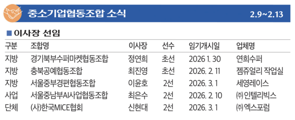 중소기업협동조합 소식 - 2026.02.16 등록일 2026.02.16 바로가기 http://www.kbiznews.co.kr/news/articleView.html?idxno=113492 이전글 한국단조공업협동조합, 제36회 정기총회 개최 다음글 PF단열재 유해성·장기 성능저하, 기준 마련 공감대 목록